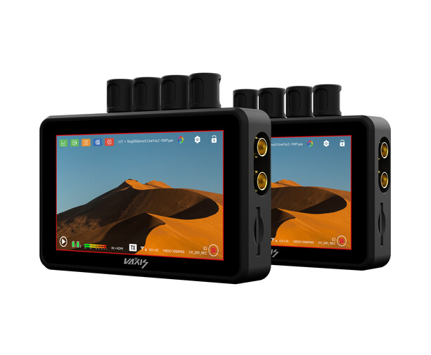 Profesionální balíček monitorů Vaxis Atom A5 SDI obsahuje dva kompaktní bezdrátové monitory Atom A5 SDI 5,5", z nichž každý funguje jako vysílač i přijímač v rámci ekosystému Vaxis Atom pro přenos videa v přímé viditelnosti až do vzdálenosti 1000'. Monitory jsou vybaveny dotykovým LCD displejem s rozlišením 1920 x 1080, jasem 2000 cd/m² a kontrastem 1200:1. a podporují rozlišení 1080p60 přes vstupy SDI a HDMI s výstupy loop-through, vestavěné nahrávání MP4 proxy na microSD, synchronizaci časového kódu se spouštěčem nahrávání kamery a pokročilé zobrazovací nástroje CINE OS (vlnová forma, vektorskop, histogram, peaking, až 50 3D LUT). Každá jednotka obsahuje dvě vyměnitelné antény, pevnou dvojitou bateriovou desku řady L a 1/4"-20 upevnění. Balíček zvyšuje použitelnost celkem devíti anténami, dvěma 32GB SD kartami, dvěma SDI kabely, dvěma ochrannými fóliemi na displej, popruhem na monitor, výsuvným stativem s držákem na monitor a přenosným kufříkem pro profesionální práci v terénu.