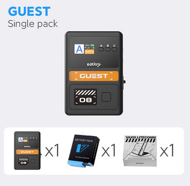 VAXIS Litecomm V1 Guest Controller (220-0028) je nezbytná rozšiřující jednotka pro bezdrátový interkomový systém Litecomm V1, která umožňuje dalším členům týmu („hostům“) připojit se k plně duplexní komunikační síti. Bezdrátově se připojuje k náhlavní soupravě Litecomm V1 Air Headset (prodává se samostatně) přes Bluetooth 5.1 s rychlým párováním NFC a poskytuje plynulý provoz bez použití rukou na place nebo v jakémkoli prostředí s více uživateli. Díky pokročilé redukci šumu DSP a robustnímu signálu DECT 1,9 GHz poskytuje jasný přenos hlasu až do vzdálenosti 350 metrů (1148 ft) v přímé viditelnosti a podporuje budoucí kaskádové rozšíření až na 26 uživatelů pomocí HUB.
