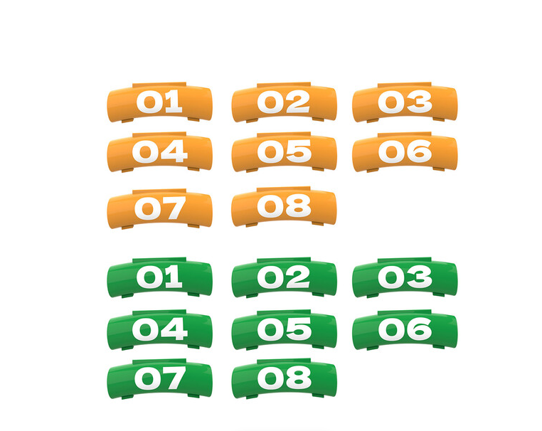 1 x samolepky Vaxis Litecomm (celkem 16: 8 oranžových, 8 zelených)