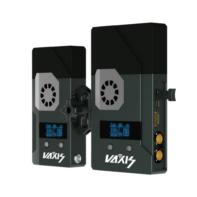 VAXIS STORM 1000S KIT je robustní bezdrátové video řešení určené pro filmaře a vysílatele, kteří při své produkci vyžadují vysoce kvalitní výkon. Tato sada obsahuje jeden vysílač (TX) a jeden přijímač (RX), které mohou přenášet video v rozlišení 1080p na vzdálenost přímé viditelnosti až 1148 stop s latencí menší než 1 milisekunda, což zajišťuje bezproblémové sledování a nahrávání v reálném čase.