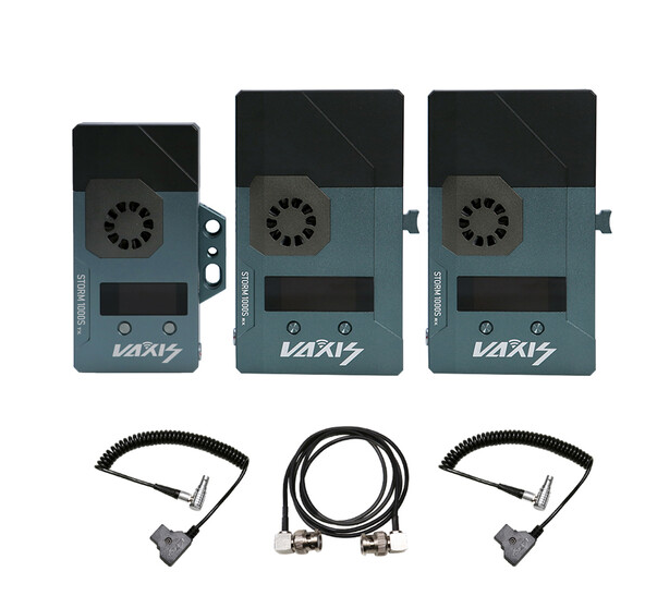 Sada bezdrátového vysílače Vaxis Storm 1000S + duální přijímače poskytuje vizuálně bezztrátové video v rozlišení 1080p s latencí pod 1 ms v dosahu 1148' v přímé viditelnosti, s rozhraním 3G-SDI a HDMI I/O se smyčkovým výstupem na vysílači, dva výstupy SDI/HDMI na přijímač, podporu multicastu, křížovou konverzi, průchod časového kódu/metadat a provoz bez rušení na 20 kanálech v pásmech 5,1–5,9 GHz.