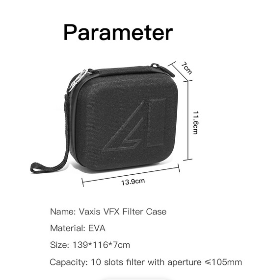Pouzdro na filtry Vaxis VFX (VAR23-13) nabízí profesionální ochranu a přenosnost až pro deset kulatých filtrů o průměru 105 mm. Má voděodolný a nárazuvzdorný vnější povrch, deset speciálních přihrádek s látkovou podšívkou, které chrání před poškrábáním, a bezpečné zapínání na zip pro snadný přístup. S rozměry pouhých 5,5 x 4,6 x 2,8 palce je toto lehké, ale robustní pouzdro ideální pro kameramany a fotografy, kteří potřebují organizované úložiště filtrů na cestách, a je kryto omezenou jednoletou zárukou výrobce.