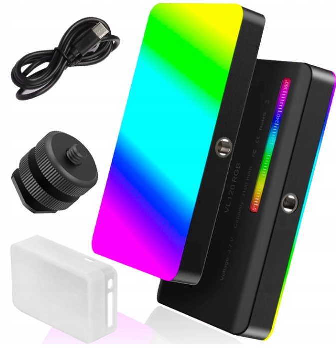 VL120 nabízí plnou kontrolu nad RGB s 360 volitelnými barvami, což vám umožňuje vytvářet dynamická pozadí, náladové osvětlení a kreativní vizuální efekty. Kromě režimu RGB lze nastavit barevnou teplotu od 2500 K do 9000 K (±200 K) pro teplé, neutrální nebo studené osvětlení. Jas je plynule nastavitelný, což vám umožňuje přesnou kontrolu nad intenzitou pro jakoukoli scénu.