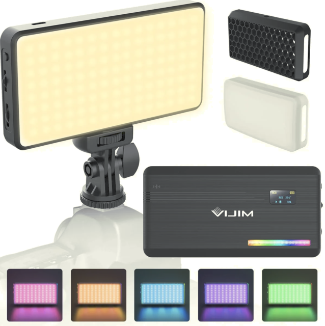 VIJIM VL196 je univerzální RGB LED video světlo s nastavitelnou barevnou teplotou (2500–9000 K), 360° ovládáním RGB a 20 přednastavenými světelnými efekty. Je kompaktní, lehké a napájené dobíjecí baterií s kapacitou 3000 mAh, takže je ideální pro vlogování, rozhovory, streamování a kreativní video projekty.
