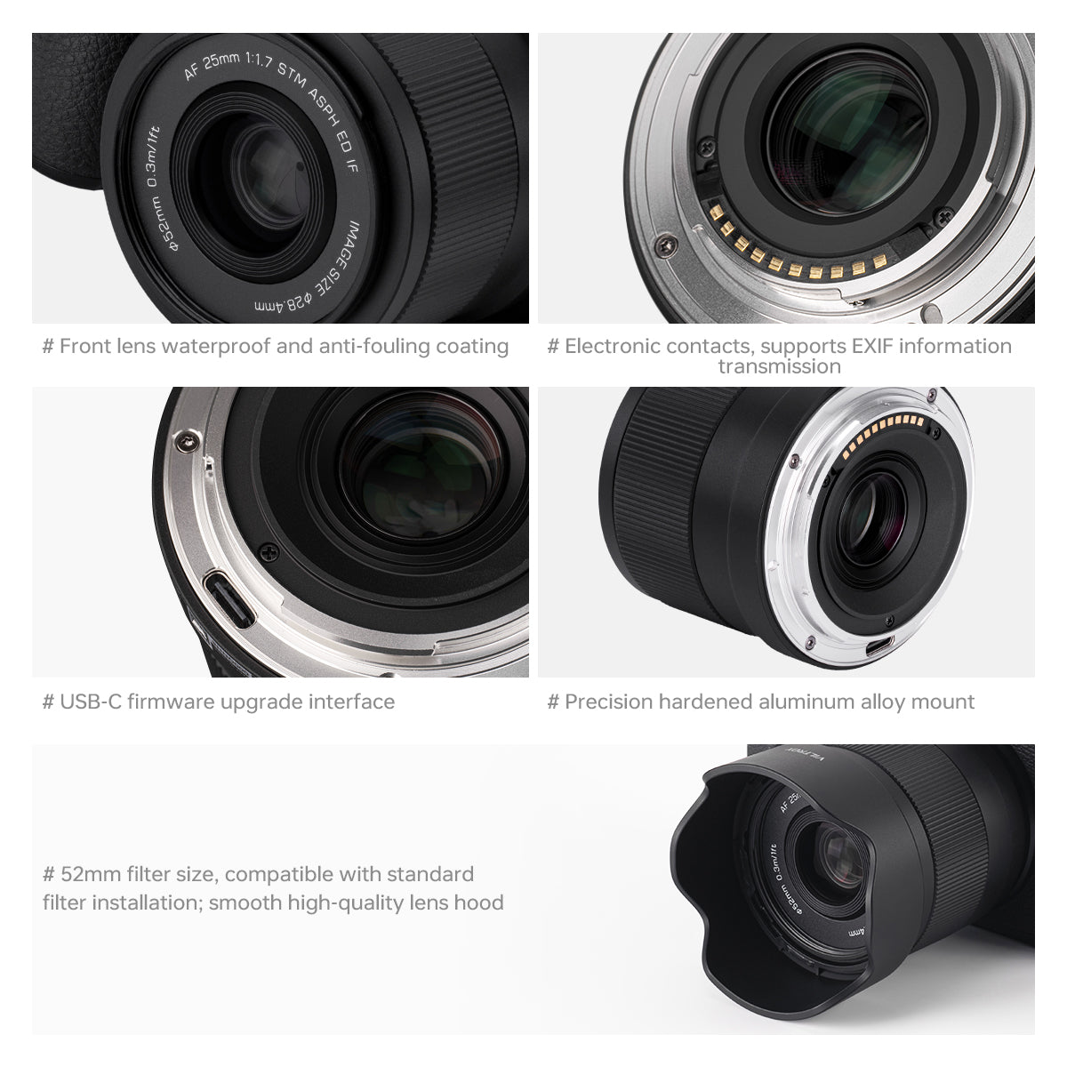 Objektiv AF 25 mm F1,7 je novou generací lehkého objektivu Viltrox s automatickým zaostřováním, který nabízí výjimečnou hodnotu pro začátečníky. Jeho kompaktní konstrukce, přesné automatické zaostřování a světelnost F1,7 poskytují vynikající kvalitu obrazu, díky čemuž je kreativní vyjádření pro všechny uživatele snadné. Díky přenosnosti a kapesní velikosti je inspirace vždy na dosah.