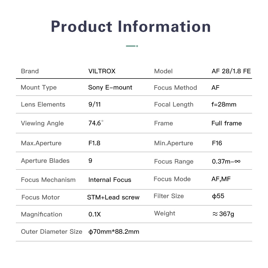 Viltrox AF 28mm F1.8 Z/FE Mount Automatické ostření Nikon/Sony Full Frame širokoúhlý základní objektiv s podporou Eye-AF USB Upgrade