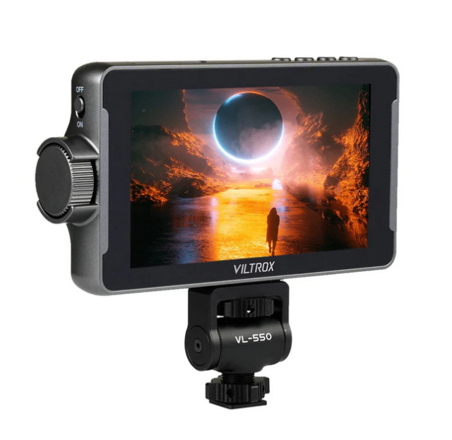 Viltrox DC-550 je kompaktní, ale výkonný 5,5palcový monitor s rozlišením Full HD určený pro filmaře a fotografy, kteří potřebují kvalitní vizuální monitoring. Díky rozlišení 1920 × 1080 bodů, jasu 1200 nitů a kontrastnímu poměru 1200:1 zajišťuje tento displej křišťálově čisté zobrazení i v jasném venkovním prostředí. Jeho ultraširoký pozorovací úhel 178° umožňuje snadné sledování z různých pozic.