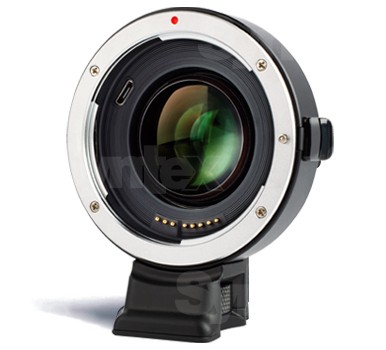Tento „Speed Booster 0,71x“ značky Viltrox slouží nejen k přizpůsobení bajonetu Sony E (APS-C) pro objektivy Canon EF, snižuje také ohniskovou vzdálenost objektivů (0,71x) a zvyšuje jejich světelnost (3 eV). Nabízí rovněž 1/4" závit pro kamerové klece a podporu AF. Rozměry 65x28 mm váha 176 g.