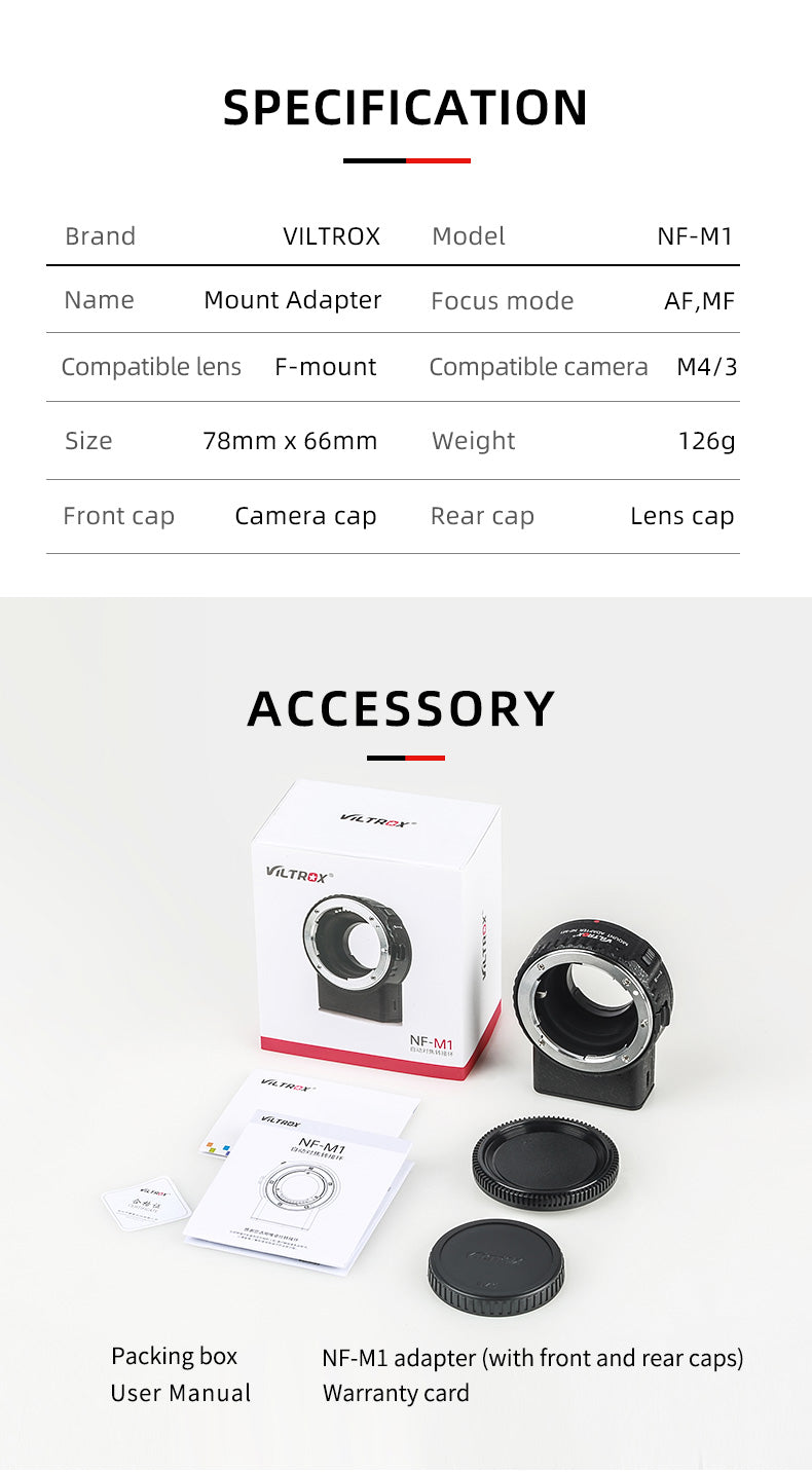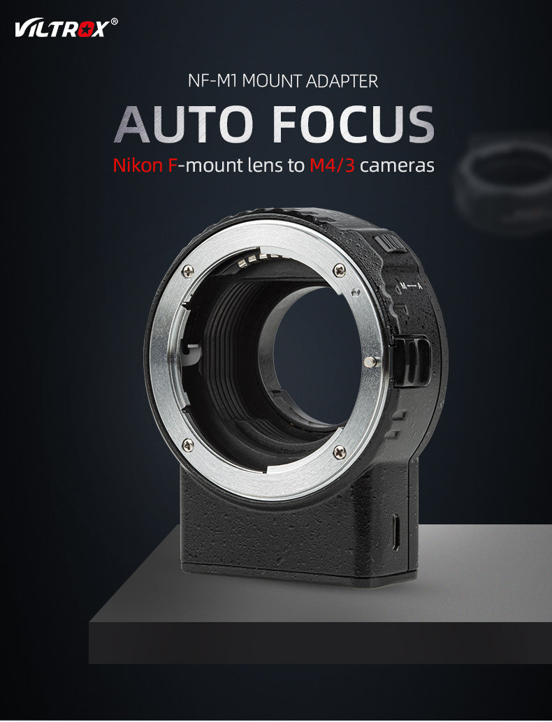 Objektiv Viltrox NF-M1 s automatickým ostřením pro Nikon F-mount na fotoaparát Micro Four Thirds M4/3 Panasonic Olympus