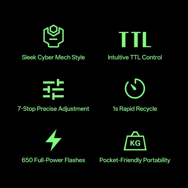 Spark Z3 je vybaven režimem TTL, který dokáže měřit světlo v reálném čase skrze objektiv a vypočítat výstup blesku pro automatické bleskování. Z3 má delší životnost baterie, umožňující až 650 záblesků na plný výkon.