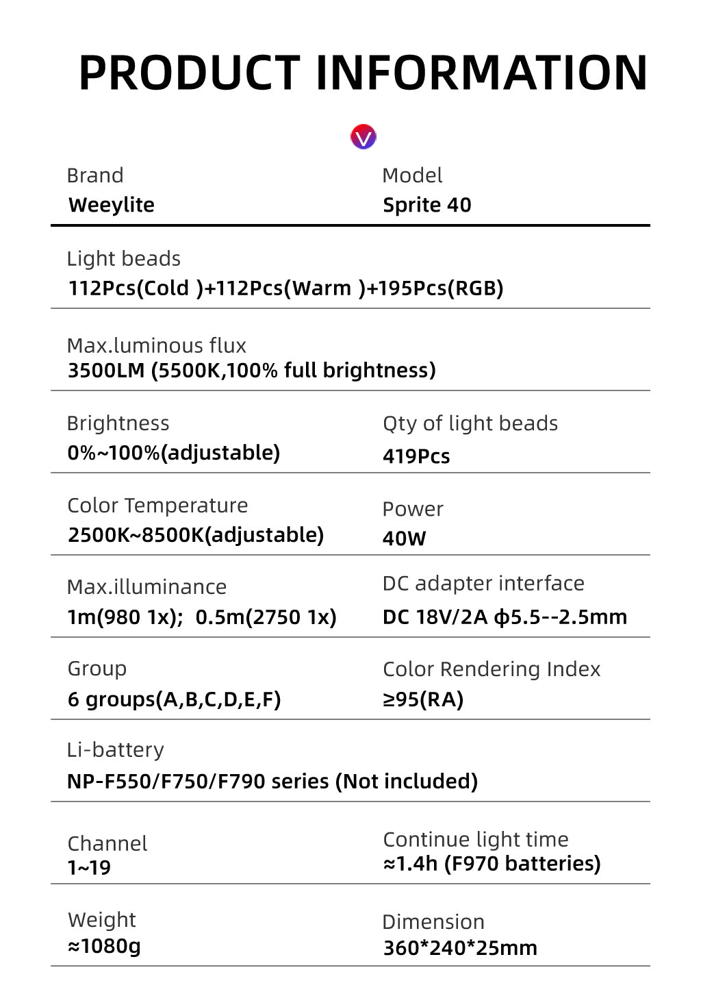 Osvětlete své předměty pomocí tohoto dvoubarevného světla LED Weeylite Sprite 40 s displejem LCD od společnosti Viltrox. Toto měkké dvoubarevné světlo LED má vysoký CRI 95 pro přesné podání barev.Sprite 40 je profesionální fotografické RGB světlo, které si vybralo vysoký index (bílé + teplé) lampových kuliček a vysoce kvalitní RGB barevné lampových kuliček.Barevnou teplotu a jas lze snadno nastavit.S funkcemi nízké spotřeby energie, stabilní teploty barev a snadno se přenáší, aby vyhovoval vašim požadavkům na fotografování.
