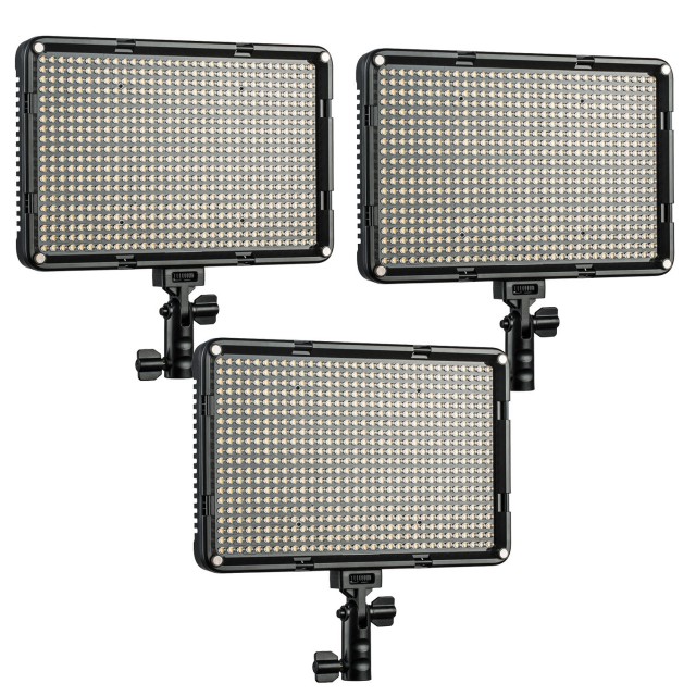 Sada tří světel Viltrox VL-D640T. Intenzivní 45W Bi-color LED světlo s nastavitelnou barevnou teplotou (v rozsahu 3300-5600K) i intenzitou (20-100%; max. 4800 lm, 4100 lx/1 m). Nabízí možnost bezdrátového dálkového ovládání (2,4 GHz, ovladač součástí dodávky) a možnost napájení pomocí akumulátorů (NP-F550 / F570 / F960 / F970, baterie není součástí balení) či externího napájecího zdroje (v balení obsažen). Nastavení parametrů usnadňuje dobře čitelný LCD displej. Rozměry 286x190x32 mm, váha 8,5 kg.