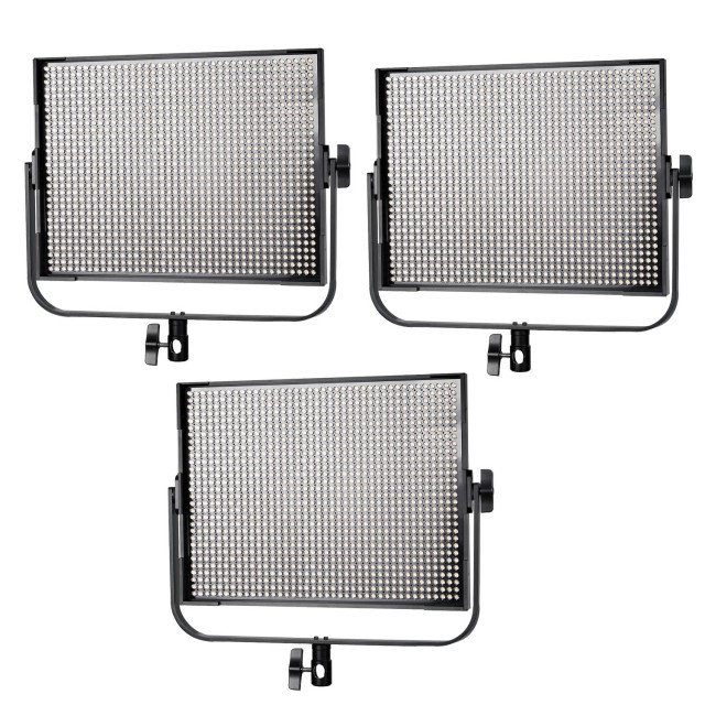 Sada tří světel Viltrox VL-D85T. Intenzivní 85W Bi-color LED světlo s nastavitelnou barevnou teplotou (v rozsahu 3300-5600K) i intenzitou (20-100%; max. 9300 lm, 7030 lx/1 m). Nabízí možnost bezdrátového dálkového ovládání (2,4 GHz, ovladač součástí dodávky) a možnost napájení pomocí V-mount baterie (baterie není součástí balení) či externího napájecího zdroje (v balení obsažen). Nastavení parametrů usnadňuje dobře čitelný LCD displej. Rozměry 394x364x58 mm, váha 2860 g.