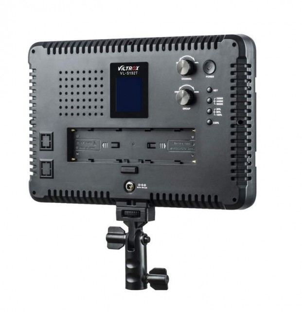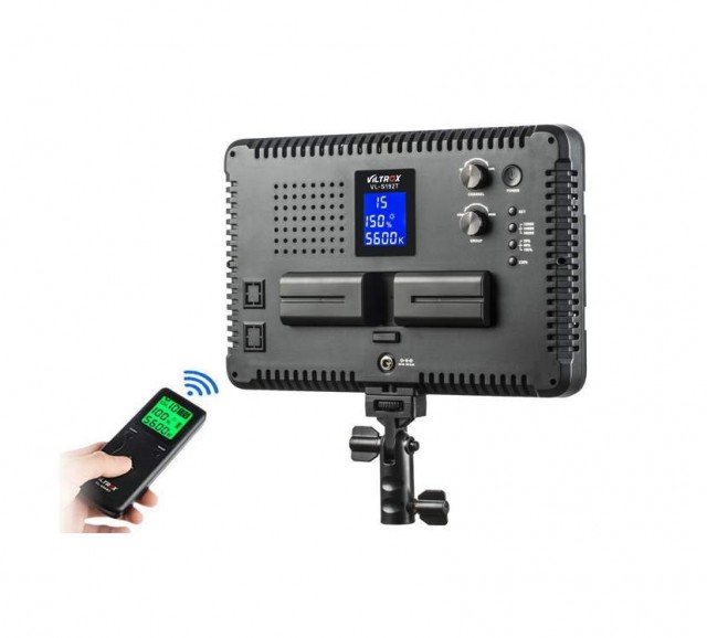 Světlo Viltrox VL-S192T. Intenzivní 45W dvoubarevné LED světlo s nastavitelnou teplotou barev (v rozsahu 3300-5600 K) a intenzitou (20-100 %; max. 4700 lm, 3500 lx/1 m). Nabízí možnost bezdrátového dálkového ovládání (2,4 GHz, dálkové ovládání je součástí dodávky) a možnost napájení pomocí baterií (NP-F550 / F570 / F960 / F970, baterie nejsou součástí dodávky) nebo externího zdroje (je součástí dodávky). Nastavení parametrů usnadňuje přehledný LCD displej. Rozměry 286x190x32 mm, hmotnost 770 g. Upozorňujeme, že k provozu je nutný přímý stejnosměrný napájecí kabel nebo dvě baterie.
