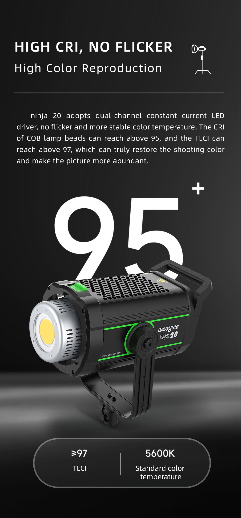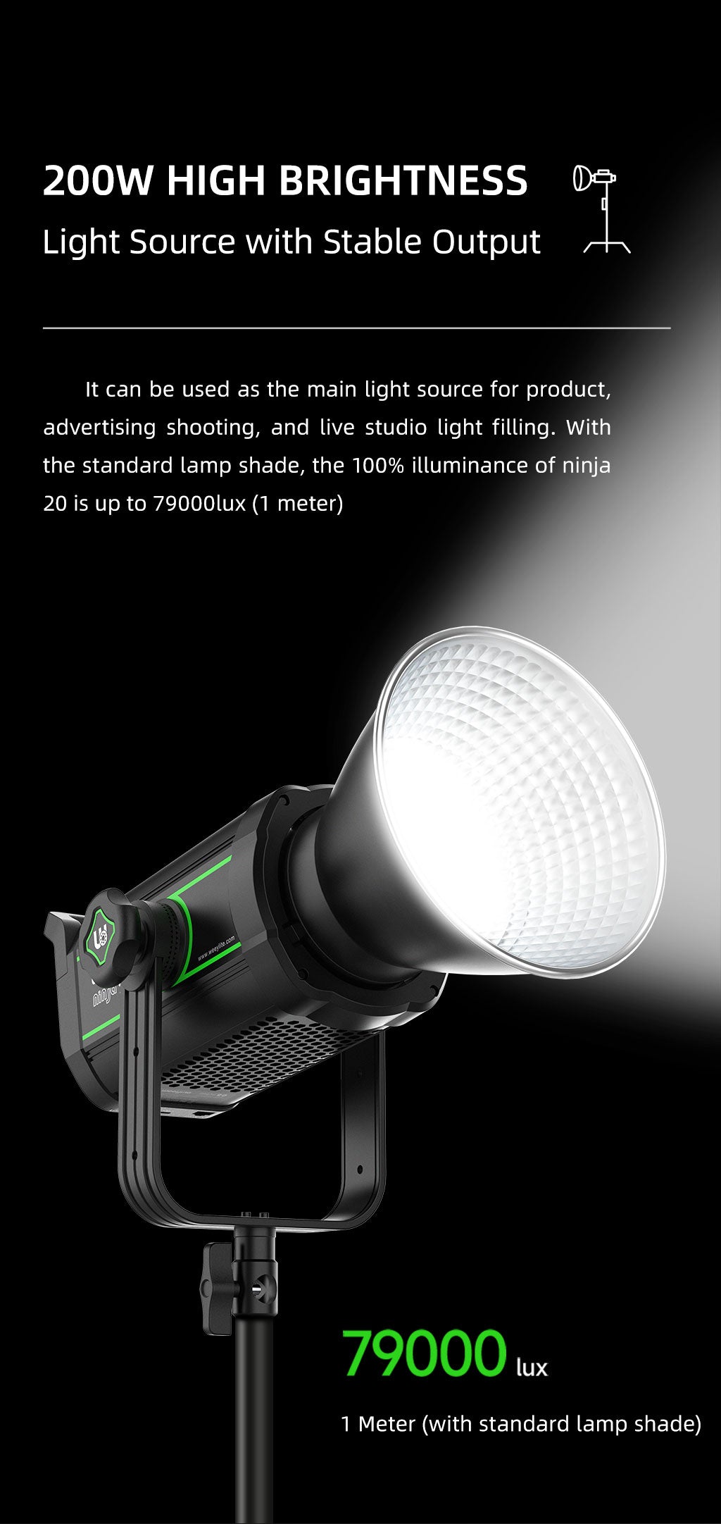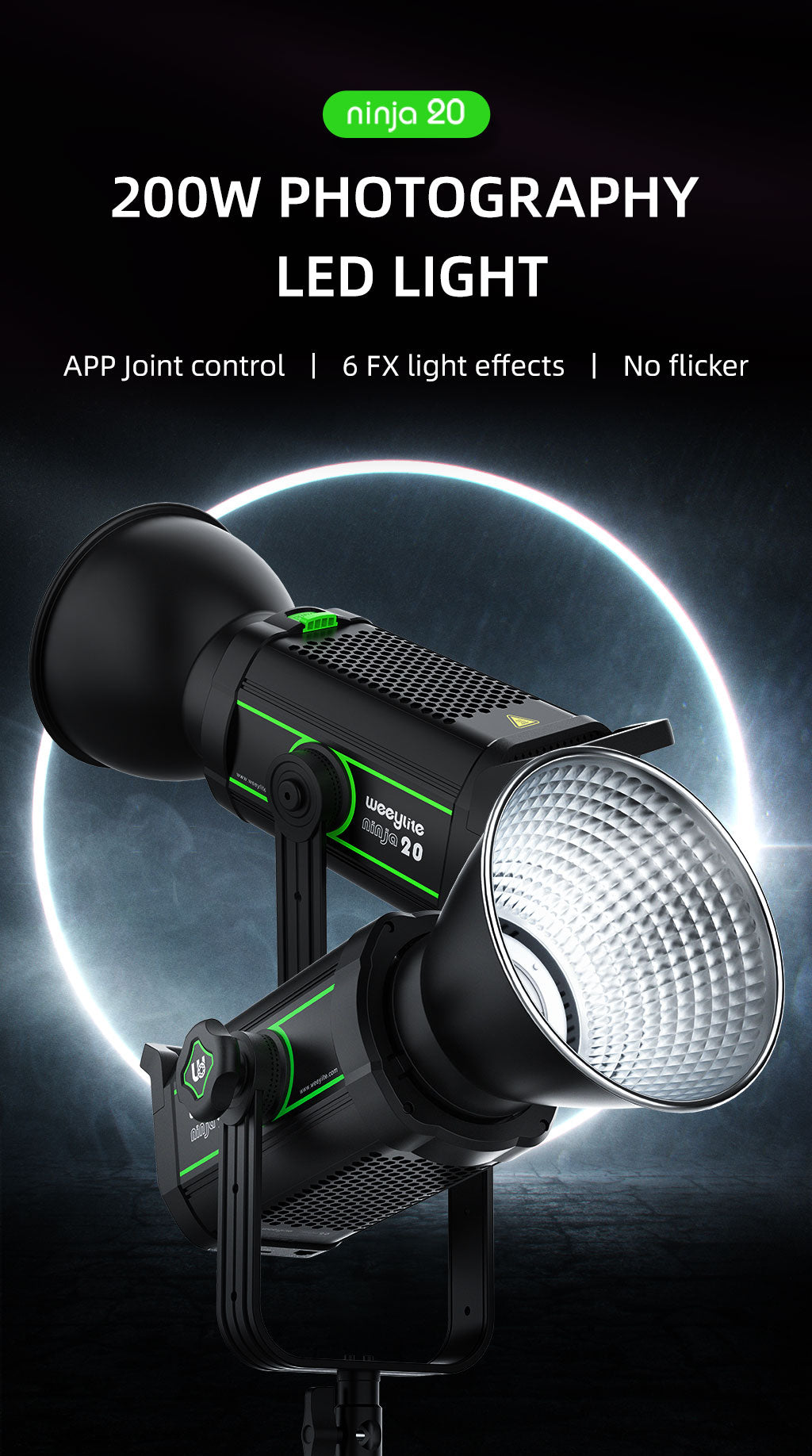 Weeylite Ninja 20 200W 5600K APP Joint Control 6 FX světelných efektů TLCI≥97, RA≥95 Profesionální COB LED světlo