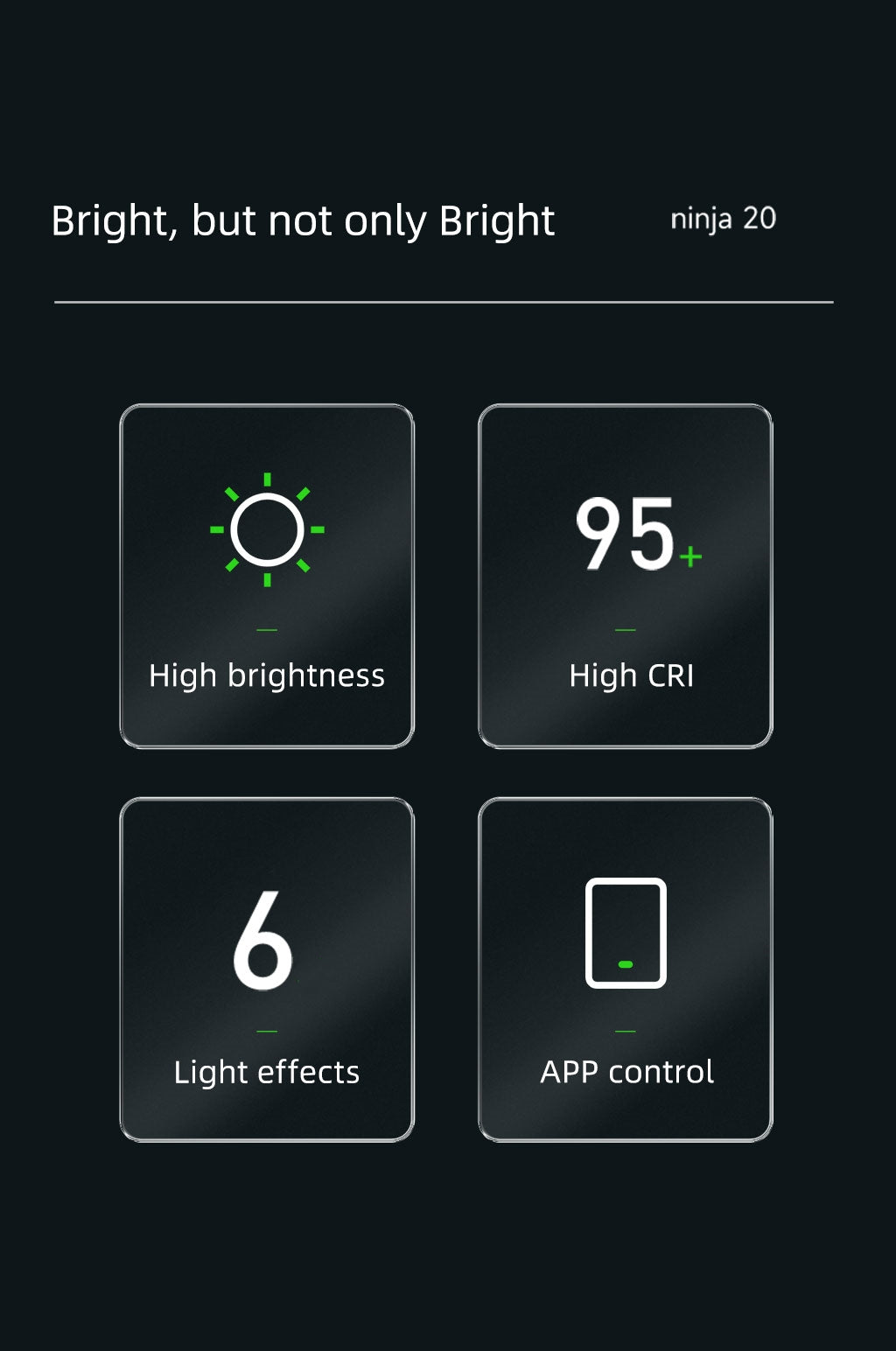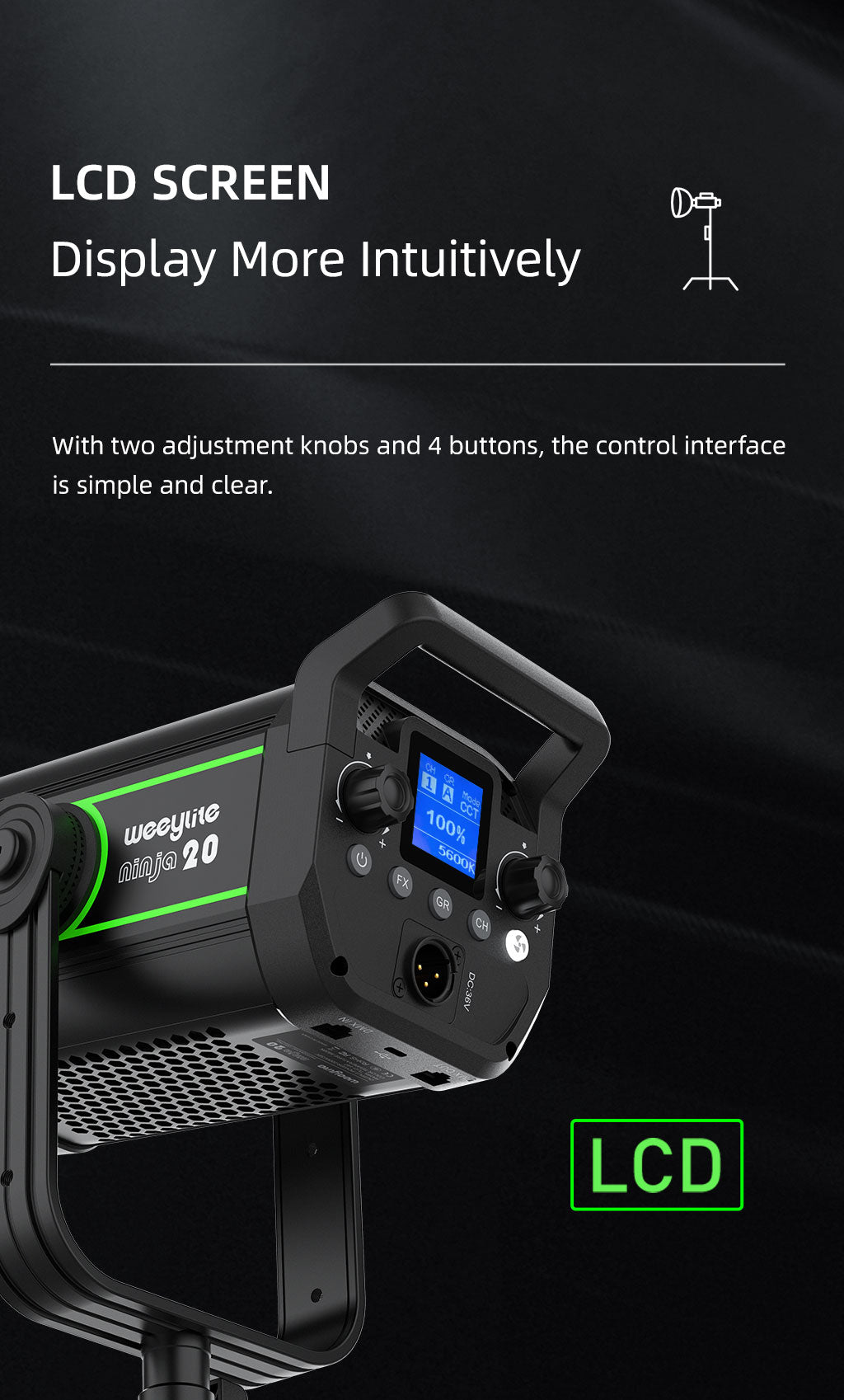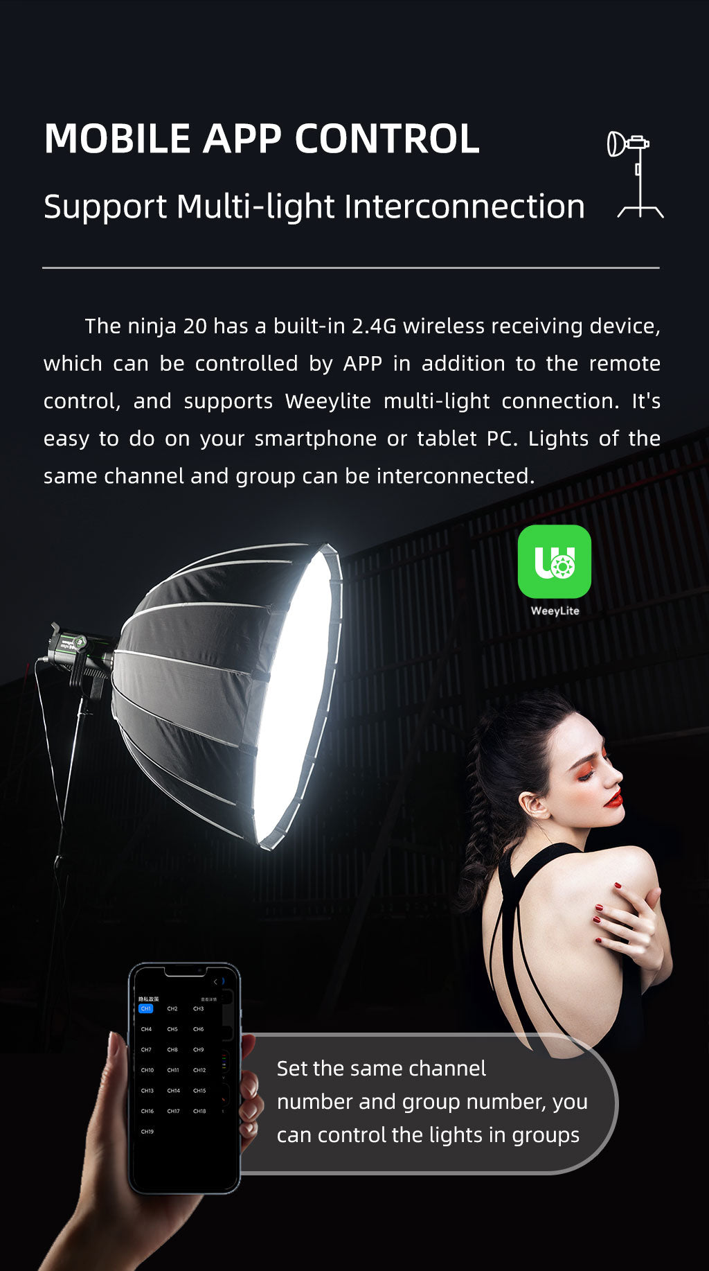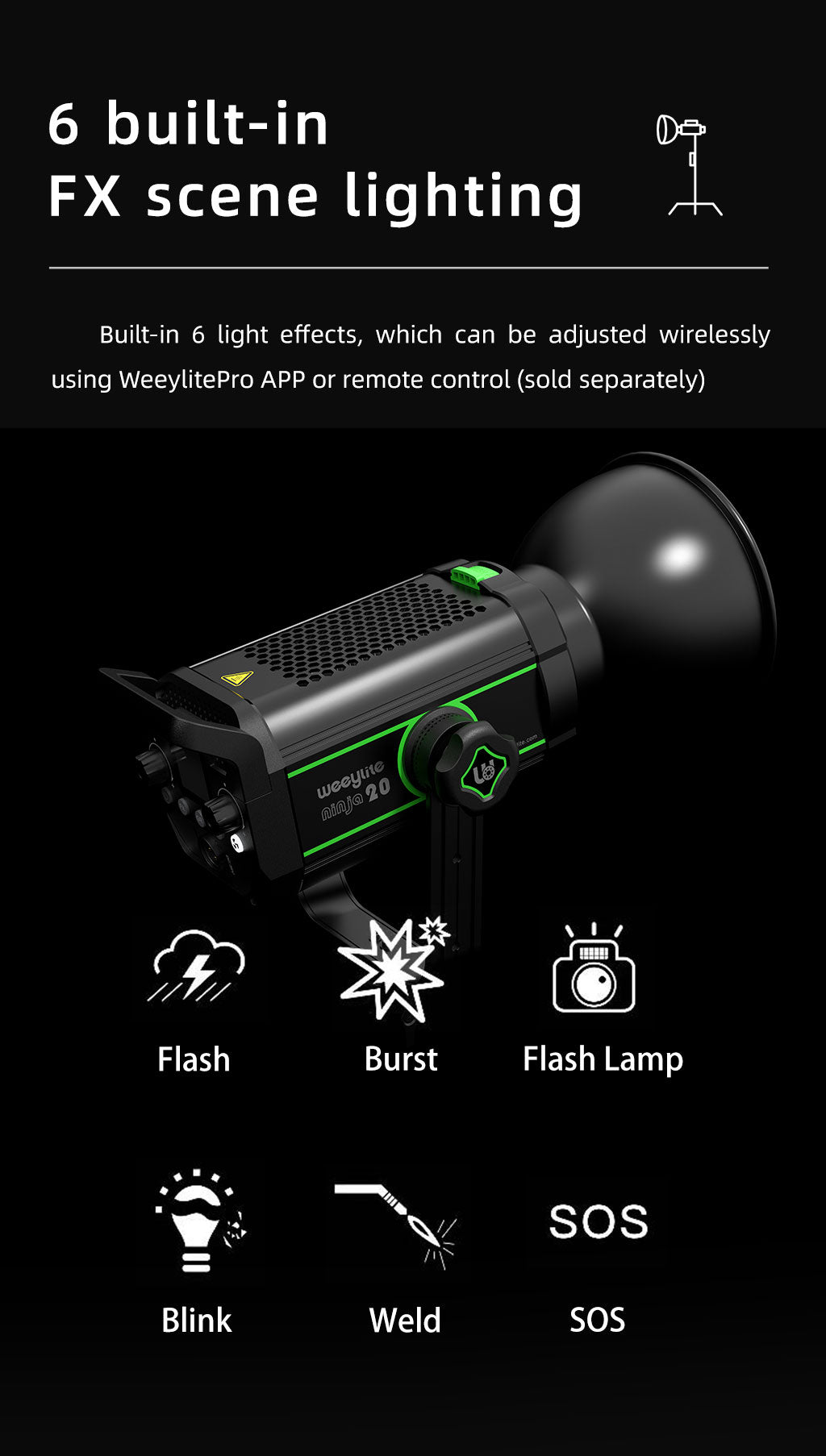 Weeylite Ninja 20 200W 5600K APP Joint Control 6 FX světelných efektů TLCI≥97, RA≥95 Profesionální COB LED světlo