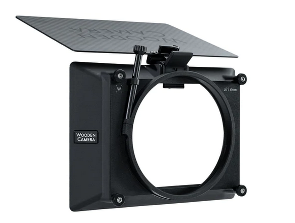 Přiložený horní praporek je vyroben z lehkých uhlíkových vláken a zakrývá přední část matteboxu, což je skvělé pro ochranu objektivu mezi záběry. Vlajku lze vyjmout povolením horního šroubu s palcem, zarovnáním záložky se štěrbinou pro klíč a vytažením.