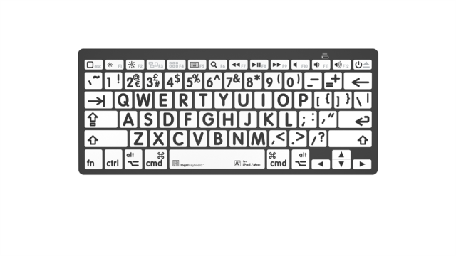 Logická klávesnice Bluetooth s velkým potiskem - černá na bílé. Vyrobeno pro Mac. Navigace v počítači nikdy nebyla snazší - klávesnice Logickeyboard s velkým potiskem je vyrobena tak, aby poskytovala vyšší úroveň přístupnosti, a je tak ideální volbou pro osoby se zrakovým postižením a slabozraké. Velké a tučně vytištěné klávesy odstraňují problémy spojené s tradičními klávesnicemi a umožňují pohodlnější a efektivnější psaní.