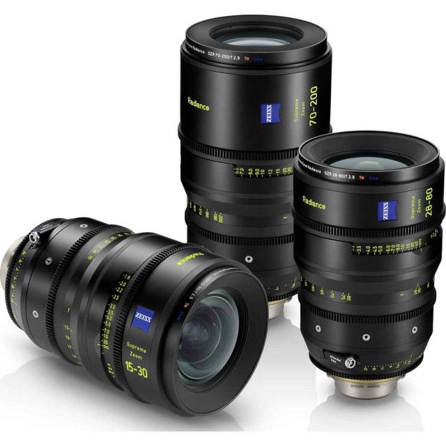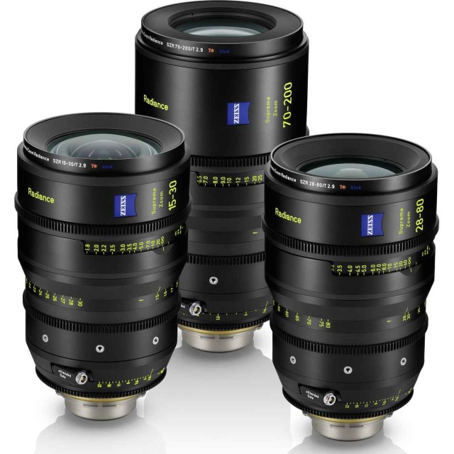 Objektivy ZEISS Supreme Zoom Radiance jsou jedinečnou řadou filmových zoomů a jedinými zoomy, které odpovídají obrazovému podání řady Supreme Prime Radiance. Tři nově navržené špičkové filmové zoomy se světelností T/2,9 – 15-30 mm, 28-80 mm a 70-200 mm – mají stejnou modrou povrchovou úpravu optiky „T*“ jako oblíbené modely Supreme Prime Radiance. Díky tomu mohou kameramani vytvořit svůj charakteristický vzhled s krásnými, konzistentními a kontrolovanými odlesky, teplejší barevnou reprodukcí a příjemným filmovým charakterem obrazu vč. nádherného bokehu. Zoomy Radiance nabízejí u filmových transfokátorů jedinečné obrazové podání, a lze je skvěle kombinovat s pevnými objektivy Zeiss Radiance Prime i s vintage objektivy. Moderní ergonomie špičkové úrovně a plná podpora dat z objektivu jsou samozřejmostí. Objednávky od 11/2024, první dodávky od 4/2025.
