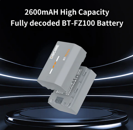 BT-FZ100 je profesionální lithium-iontová náhradní baterie s kapacitou 2600 mAh, navržená speciálně pro systém NP-FZ100 společnosti Sony. Díky plnému dekódování perfektně komunikuje s tělem fotoaparátu, zobrazuje přesný zbývající výkon a umožňuje nabíjení ve fotoaparátu bez varování nebo omezení. Je vyrobena z špičkových lithium-iontových článků a vybavená pokročilým 8vrstvým ochranným systémem (před přebitím, nadproudem, zkratem, přehřátím atd.), poskytuje stabilní výstup 7,2 V a zvýšenou bezpečnost pro delší fotografování. V kombinaci s nabíjecími pouzdry řady ZGCINE PS nebo nabíječkami řady PC podporuje vysokorychlostní nabíjení a dosahuje 100% kapacity přibližně za 2,5 hodiny – což je výrazně rychlejší než standardní nabíjení pomocí originálních nabíječek Sony.