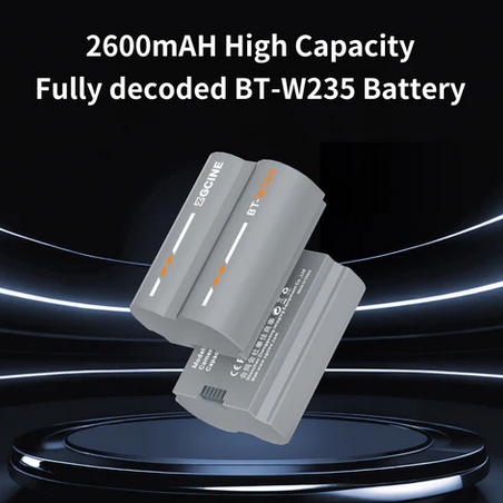 ZGCINE BT-W235 je plně dekódovaná náhradní baterie od jiného výrobce s kapacitou 2400 mAh (7,4 V) pro fotoaparáty Fujifilm, která se shoduje s originální baterií NP-W235 co do velikosti a výkonu – žádné varování, plná komunikace s fotoaparátem – a zároveň nabízí rychlé nabíjení (plné nabití za ~2 hodiny s nabíječkami…