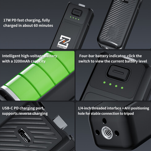 Baterie ZGCINE PK-H01 je vysoce výkonné příslušenství pro kamery DJI Osmo Pocket 3, které nabízí inteligentní vysokonapěťovou baterii s kapacitou 3200 mAh pro bezproblémové natáčení. Díky kompaktnímu a lehkému designu se snadno přenáší, zatímco rychlé nabíjení PD 17 W umožňuje plné nabití baterie přibližně za 60 minut. Rukojeť podporuje nabíjení při nízké teplotě s minimálním elektrickým šumem, reverzní nabíjení přes USB-C PD a je vybavena čtyřmístným indikátorem stavu baterie pro sledování v reálném čase. Díky 1/4palcovému závitovému rozhraní a polohovacímu otvoru Arri zajišťuje stabilní připojení ke stativům. Navíc umožňuje přímý přenos dat do počítačů pro pohodlný přístup k souborům na paměťové kartě.