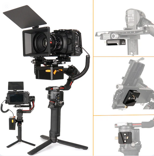 ZGCINE VR-04 Mini V-Lock Plate je určena pro miniaturní gimbalové stabilizátory DJI Ronin S2/S3 a poskytuje bezpečné a efektivní řešení napájení. Umožňuje bezproblémovou integraci s bateriemi V-Mount a zajišťuje prodlouženou dobu provozu pro profesionální filmování a nastavení stabilizátorů.