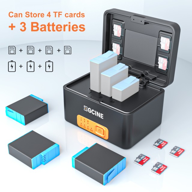 Nabíjecí pouzdro ZGCINE pro baterie GoPro je přenosné řešení napájení určené pro baterie GoPro řady 901 a 801. Díky vestavěné baterii s kapacitou 10 400 mAh, rychlému nabíjení přes USB-C PD a praktickému úložnému prostoru vám toto nabíjecí pouzdro se třemi sloty zajistí, že budete vždy připraveni k akci.