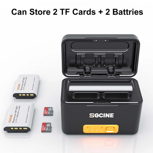Nabíjecí pouzdro ZGCINE SONY BX1 (PS-BX1 Kit2) se dodává se dvěma bateriemi NP-BX1 a nabízí přenosné řešení pro nabíjení zařízení Sony s rychlým nabíjením a efektivním skladováním.