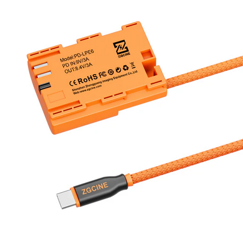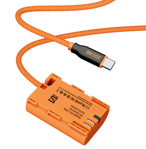 Kabel ZGCINE USB-C s atrapou baterie LPE6 poskytuje nepřetržité napájení pro fotoaparáty a další zařízení a je vybaven vylepšenými bezpečnostními funkcemi a plným dekódováním pro stabilní výkon.