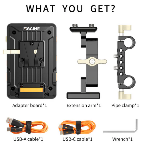 Sada ZGCINE V Mount Plate VP1 Kit3 nabízí univerzální řešení napájení s výstupy USB-C PD, více výstupními porty a nastavitelným ramenem pro kamerové soupravy. Je vybavena jednotlačítkovým ovládáním, indikátorem stavu baterie a kompatibilitou s průmyslovým standardem V-mount.
