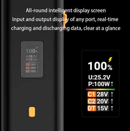 ZG-H110 je výkonný a univerzální bateriový grip navržený pro profesionální filmaře a videografy. Jeho nejvýraznější vlastností je podpora USB-C PD3.1, která poskytuje obrovský výkon 140 W pro vstup i výstup, což umožňuje rychlé nabíjení a napájení zařízení s vysokými nároky na spotřebu energie. Kromě USB-C nabízí výstupy D-Tap s napětím 14,8 V a 22 V, které poskytují flexibilní možnosti napájení pro širokou škálu filmových kamer, monitorů a dalšího vybavení. Grip je vybaven přehledným 0,96palcovým OLED displejem, který na první pohled poskytuje důležité informace, jako je stav napájení a podrobnosti o výstupu. Pro maximální kompatibilitu a přizpůsobení je ZG-H110 vybaven 1/4" šroubovými otvory na spodní, horní a bočních stranách, které umožňují snadné připevnění ke stativům, klecím a dalším rozšiřujícím zařízením. S celkovou kapacitou 110 Wh nabízí dlouhodobý zdroj energie pro dlouhé natáčecí session. Kompaktní rozměry a nízká hmotnost (590 g) z něj činí praktický a výkonný doplněk každé produkční výbavy. Balení obsahuje bateriový grip H100 a kabel USB-C na USB-C 240 W Emark.