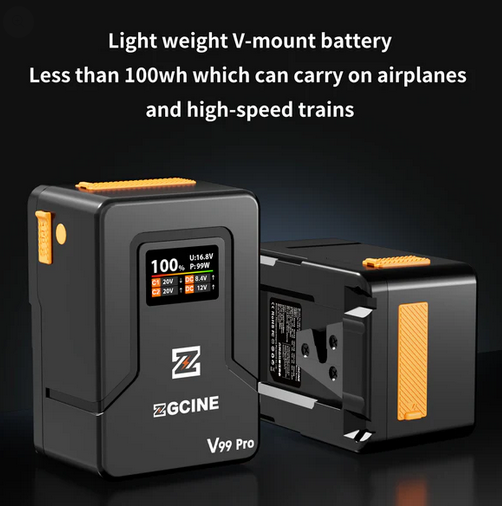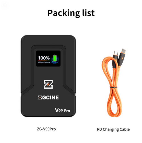 Baterie ZGCINE ZG-V99Pro V-Mount je vylepšená verze baterie V99 určená pro profesionály, kteří potřebují spolehlivý a výkonný zdroj energie. Díky rychlému nabíjení PD 100W se tato baterie plně nabije za pouhých 1,5 hodiny pomocí kompatibilní nabíječky, což zajišťuje minimální prostoje během natáčení. Její 1,1palcový chytrý displej poskytuje sledování napětí, celkového výkonu, teploty a dalších důležitých informací v reálném čase. Baterie V99Pro je vybavena několika výstupními porty, včetně USB-C, D-Tap a DC, a je tak kompatibilní s celou řadou zařízení, jako jsou videokamery, monitory fotoaparátů, LED světla, chytré telefony a počítače.