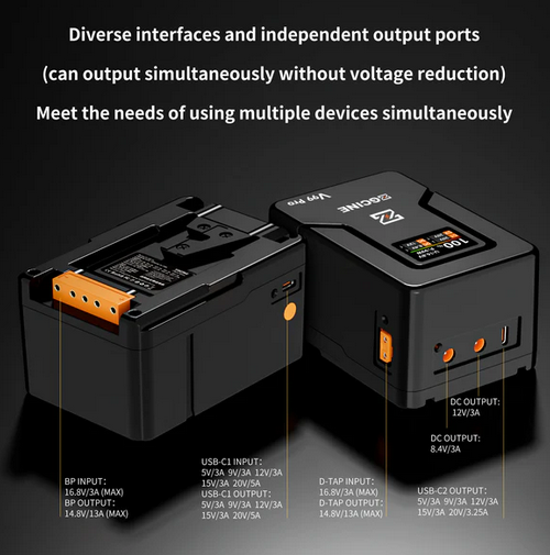 Díky široké kompatibilitě pracuje ZG-V99Pro bez problémů s řadou zařízení, včetně videokamer, monitorů fotoaparátů, LED videosvětel, chytrých telefonů a počítačů. Ať už natáčíte na místě nebo ve studiu, ZGCINE V99Pro vám poskytne energii, kterou potřebujete, abyste se mohli soustředit na svou tvůrčí práci.