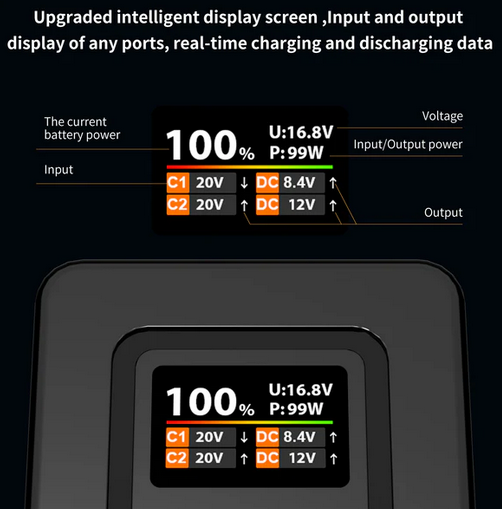 Baterie ZGCINE ZG-V99Pro V-Mount je určena pro profesionály, kteří potřebují účinné a spolehlivé napájení svých zařízení. Tato vylepšená verze baterie V99 je vybavena rychlonabíjením PD100W, které umožňuje baterii plně nabít za pouhých 1,5 hodiny pomocí 100W nabíječky. Na 1,1palcovém displeji se zobrazují důležité informace, jako je napětí, celkový výkon a teplota, což umožňuje sledování baterie a zařízení v reálném čase.