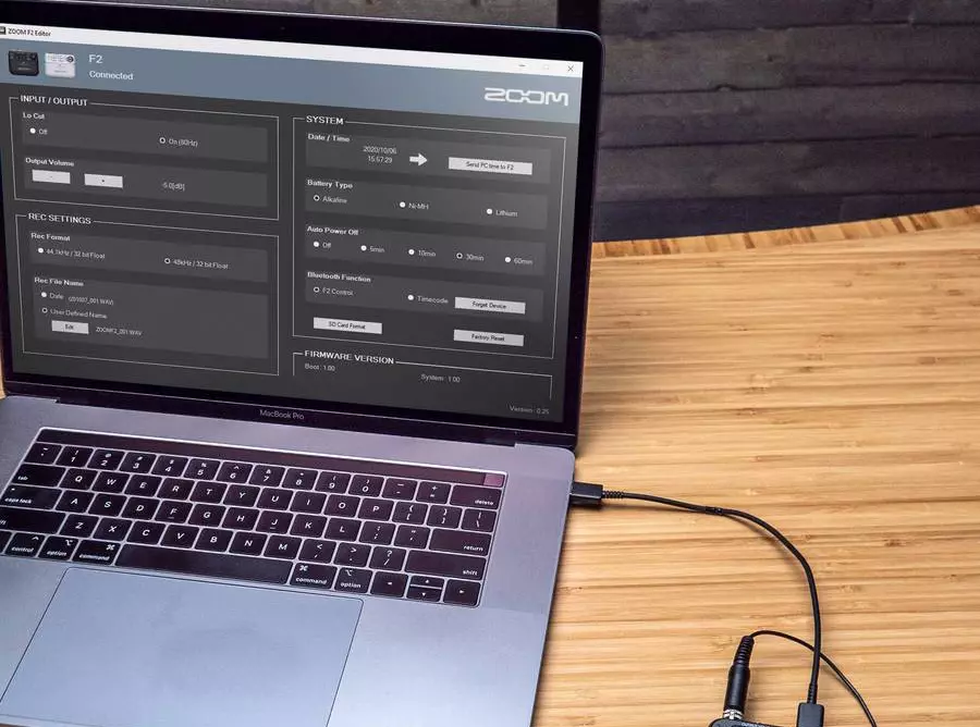 F2 Editor pro PC a Mac vám umožní upravovat nastavení, formátovat SD karty a ješte mnohem více. Stací pripojit F2 pomocí USB kabelu a spustit editor. Prostrednictvím USB mužete také také snadno prenášet soubory do pocítace.