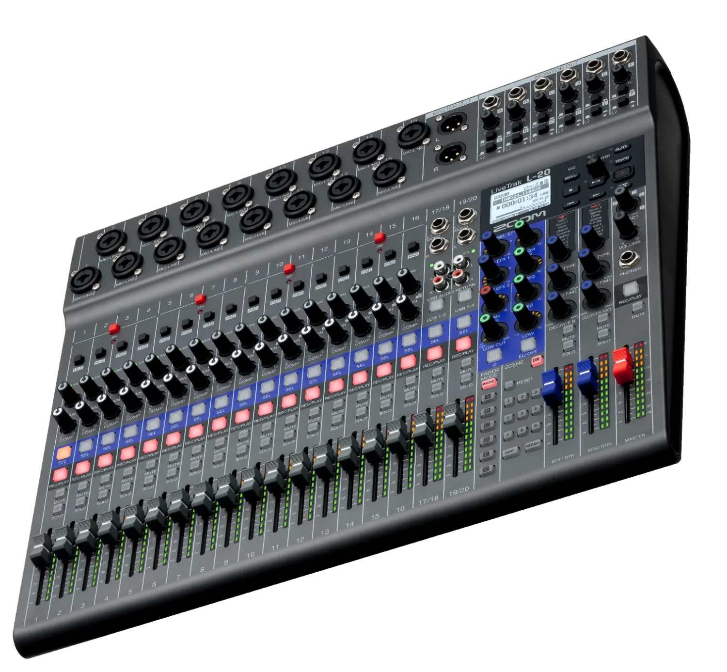 LiveTrak™ L-20 je nový digitální pult, který nabízí vše, co tvůrci potřebují k mixování, monitorování a nahrávání složitých produkcí. S 20 diskrétními zvukovými kanály a šesti individuálními vlastními monitorovými mixy je stvořen pro větší a odvážnější aranžmá.