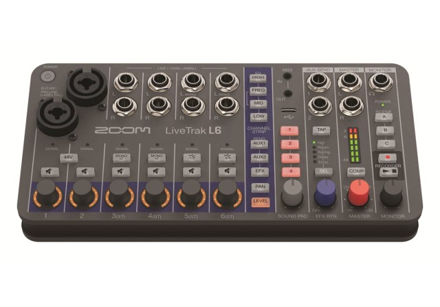 Malý se právě stal velmi velkým - LiveTrak L6 je náš nejkompaktnější a nejpřenosnější digitální mixážní pult / rekordér. S 10 stopami zvuku studiové kvality, efekty, MIDI a zvukovými pady je ideální pro kapely, syntezátory, živé vysílání a další.