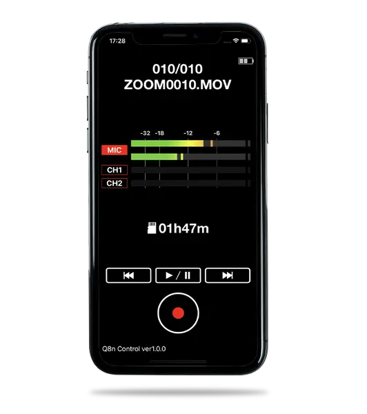 S aplikací Q8n Control (pro iOS/Android) mužete monitorovat signál na dálku a zahájit nebo zastavit nahrávání. (*Je vyžadován Bluetooth adaptér BTA-1.)